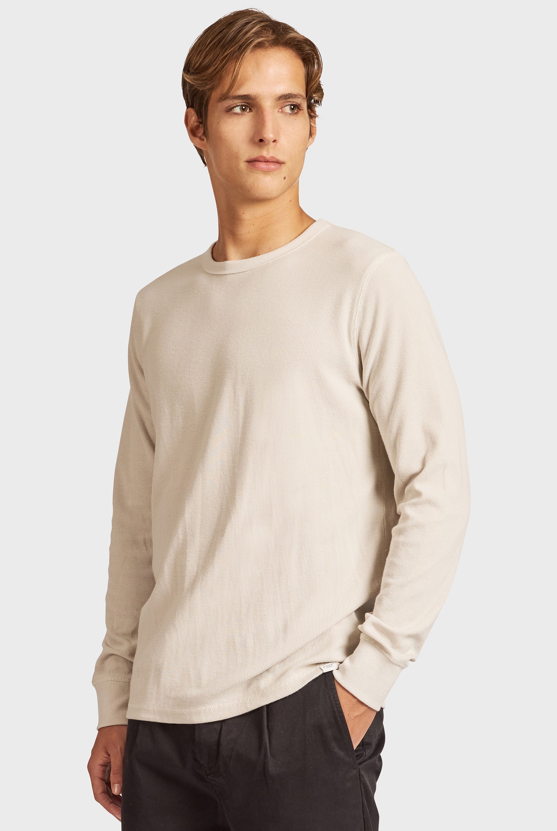 The Workers Crew is a staple basic long-sleeve tee that acts as a base to any outfit. Featuring a French rib construction for a bit of textural interest and is available in 4 essential colours.